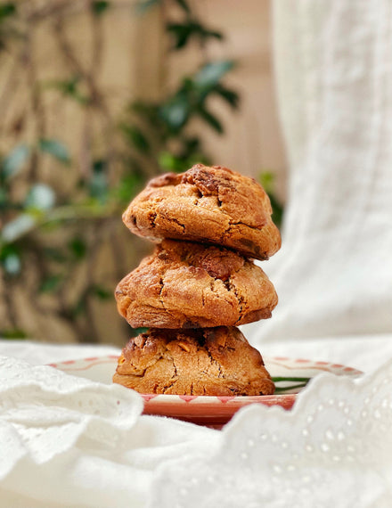 Une pâte à cookie moelleuse et vanillée, rehaussée d’une pointe de fleur de sel de Guérande, garnie d’un trio de pistoles : chocolat noir, chocolat au lait et chocolat blanc. Un équilibre ultra savoureux et terriblement réconfortant.